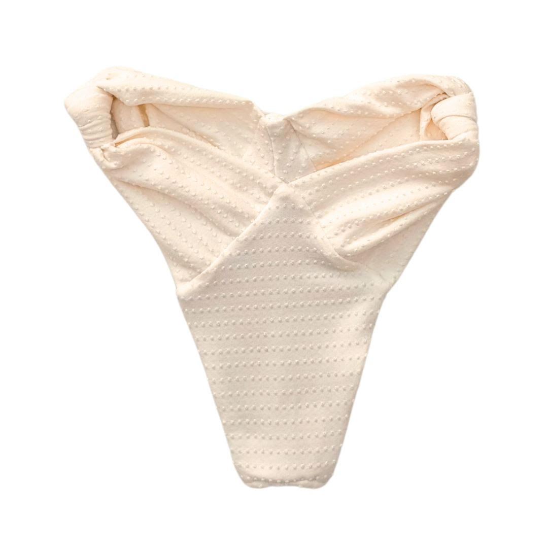 Lycra Baunilha - Tecido com FPS50+ na cor off-white e textura em bolinhas. Tecido com alta elasticidade.