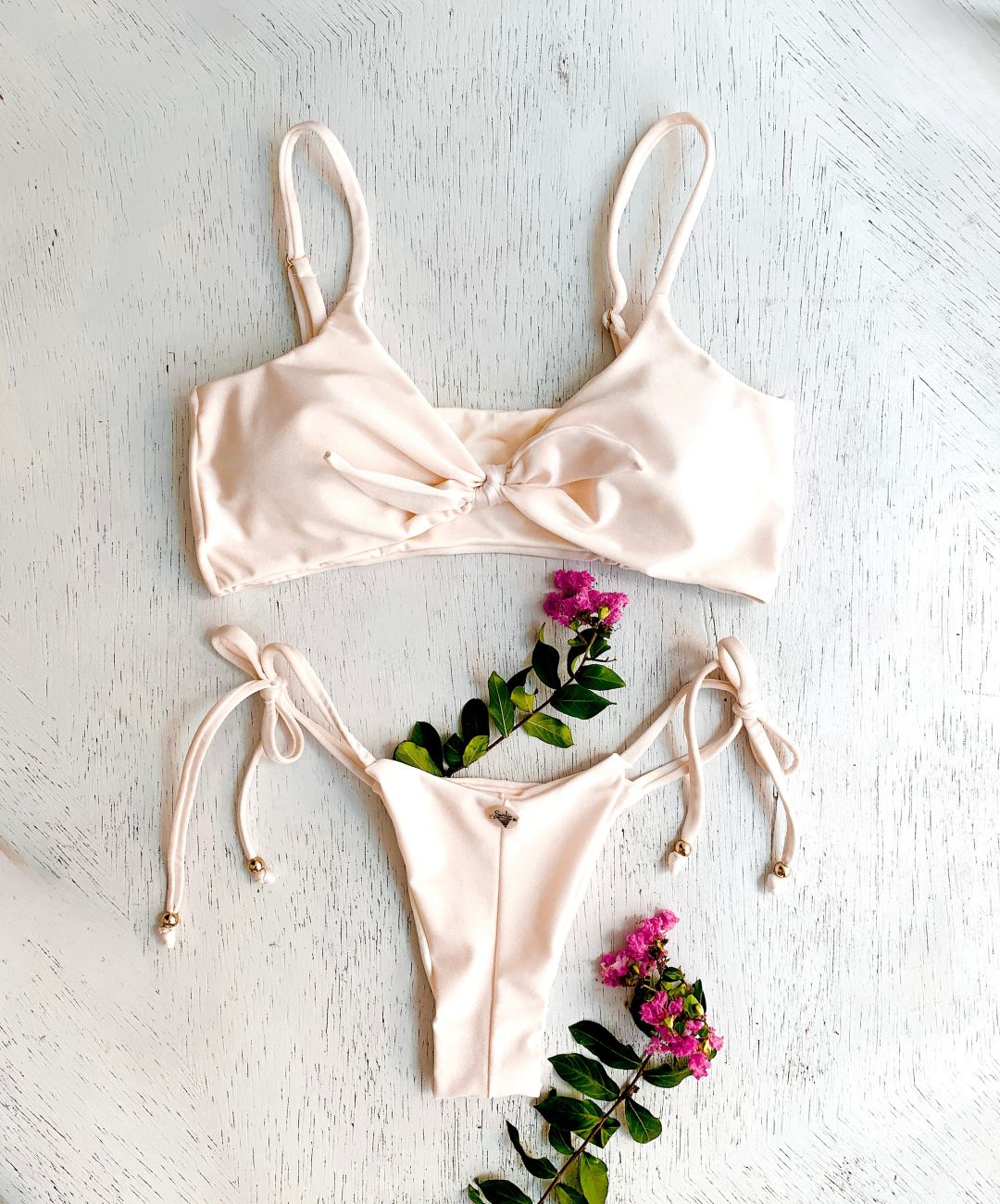 Calcinha Lacinho Lilly – O modelo de calcinha lacinho perfeito para a marquinha! Ele possui elásticos especiais na medida certa para o biquíni não sair do lugar, além de garantir total conforto. O acabamento do lacinho é em ponteiras douradas de metal, um charme! Esse modelo possui modelagem empina bumbum no fio-duplo, aquela modelagem que encaixa perfeitamente no corpo e não possui costura e nem elástico, ou seja, não marca nada e super valoriza o bumbum. Essa modelagem é sucesso na nossa marca e nossas clientes amam.