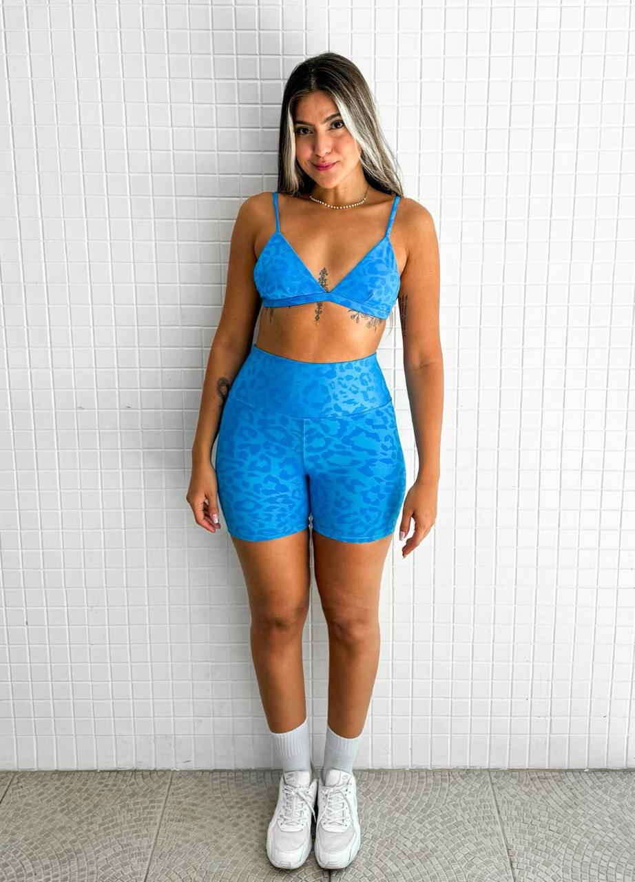 .Tecido Celeste - Tecido com textura animal print e cor flúor: super vibrante! Possui altíssima compressão, perfeita para modelar o corpo.