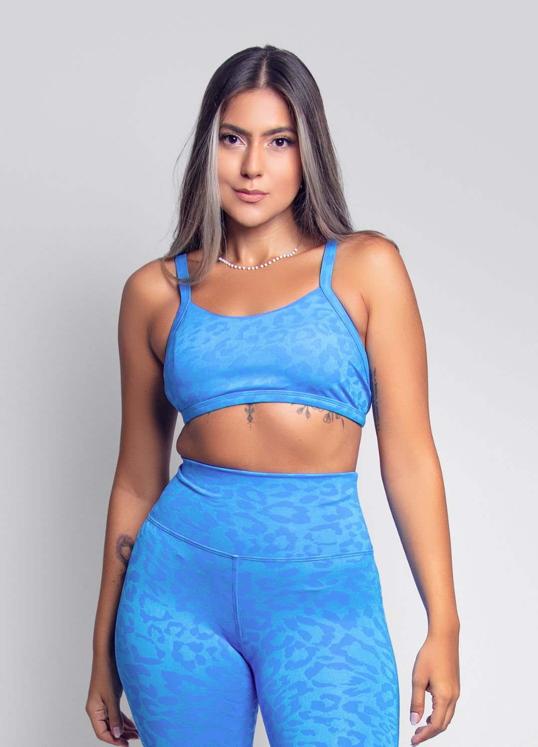 .Tecido Celeste - Tecido com textura animal print e cor flúor: super vibrante! Possui altíssima compressão, perfeita para modelar o corpo.