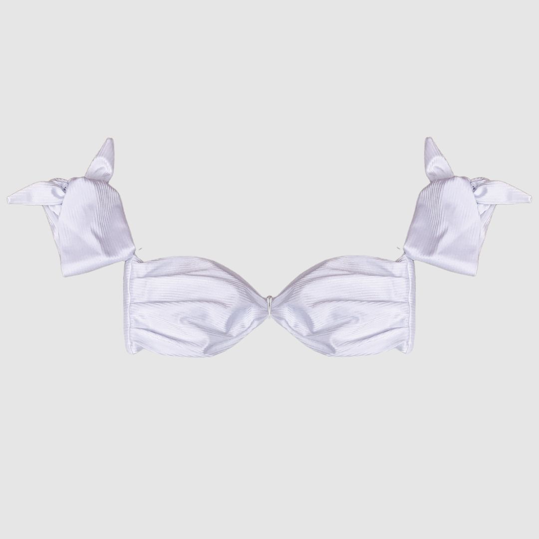 Top Lola – Top tomara-que-caia super charmoso! Tem uma argola de metal no decote, acabamento franzido nas laterais e amarração nas costas. O maior diferencial nesse top são as manguinhas amarradas no braço, uma graça! Esse modelo possui bojo molinho e confortável.