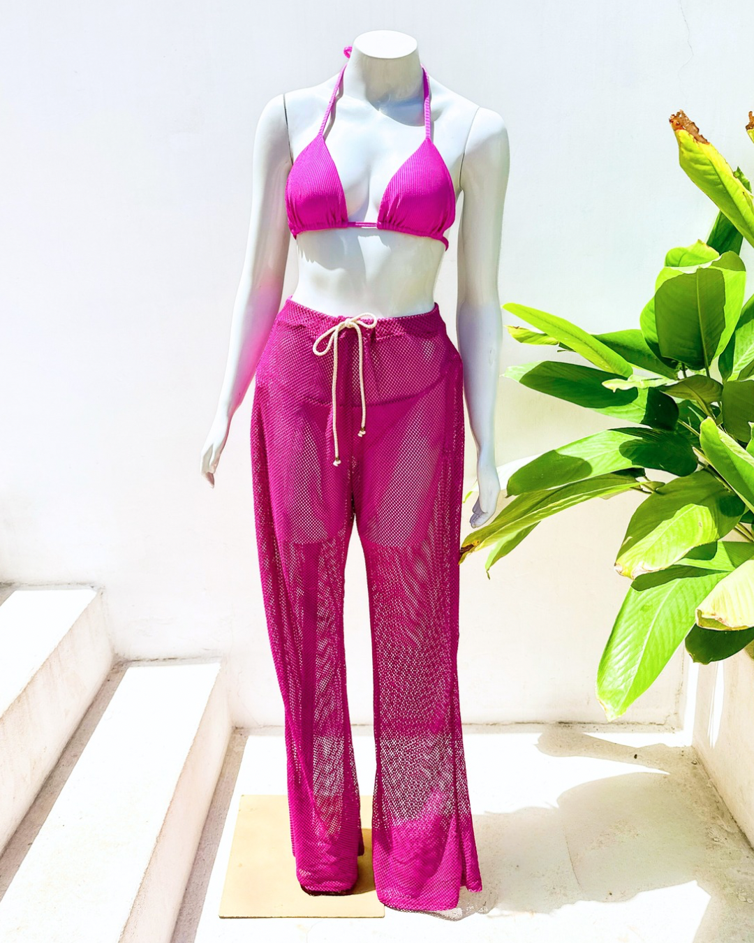 Calça deTela - A calça de tela vai se tornar a sua peça favorita de pós-praia! Ela tem modelagem Flare com cintura alta e cinto para amarração em algodão cru com ponteiras em madeira. Use para compor looks incríveis com biquínis e maiôs.