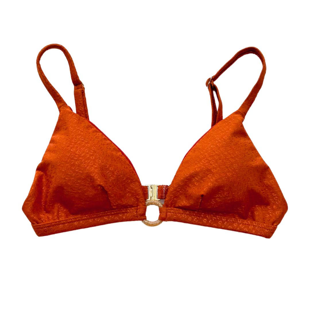 Top Cancún - É o nosso modelo triângulo fixo, pedida perfeita para conforto e marquinha! O diferencial a mais é a argola de metal dourada! Tem modelagem com pences para o melhor ajuste no busto, além de ser confeccionado com elásticos especiais na medida certa para o biquíni não sair do lugar, além de garantir total conforto (ninguém merece aquelas alças de biquíni que ficam machucando, né?).