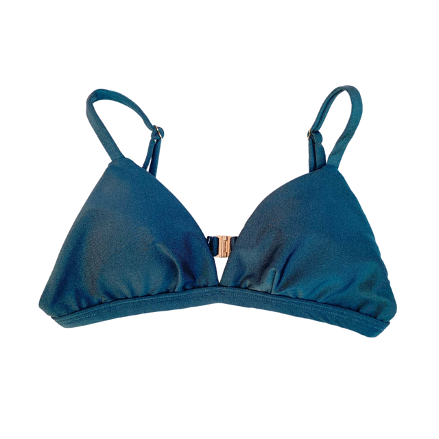 Top Oásis - É o nosso modelo triângulo fixo, pedida perfeita para conforto e marquinha! Tem modelagem com pences para o melhor ajuste no busto, além de ser confeccionado com elásticos especiais na medida certa para o biquíni não sair do lugar, além de garantir total conforto (ninguém merece aquelas alças de biquíni que ficam machucando, né?). As alças e as costas são reguláveis para garantir o tamanho perfeito, sem precisar de nenhuma amarração para te incomodar. O fecho dele é Click, então você tem ainda mais segurança de ele não abrir durante o uso. Esse modelo possui bojo molinho e confortável.